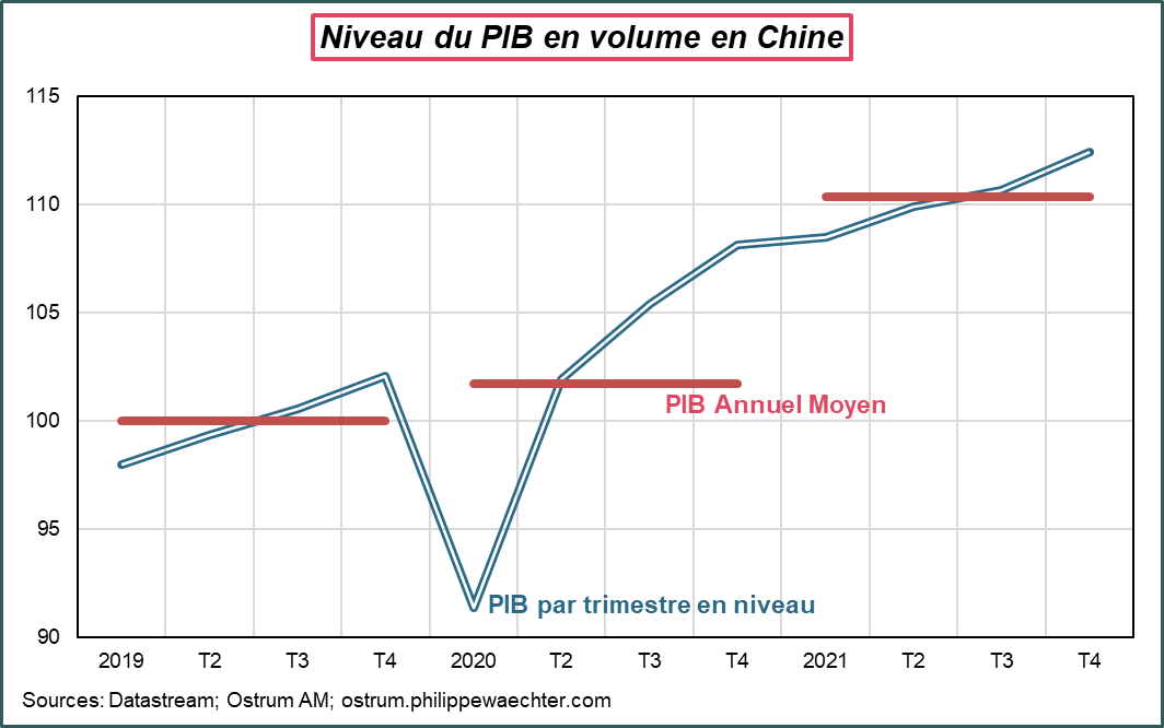 Pour 2022, l’acquis de croissance à la fin 2021 s’établit à 1.9%. C’est un peu plus fort qu’attendu et reflète les révisions qui ont été faites sur le profil du PIB chinois.