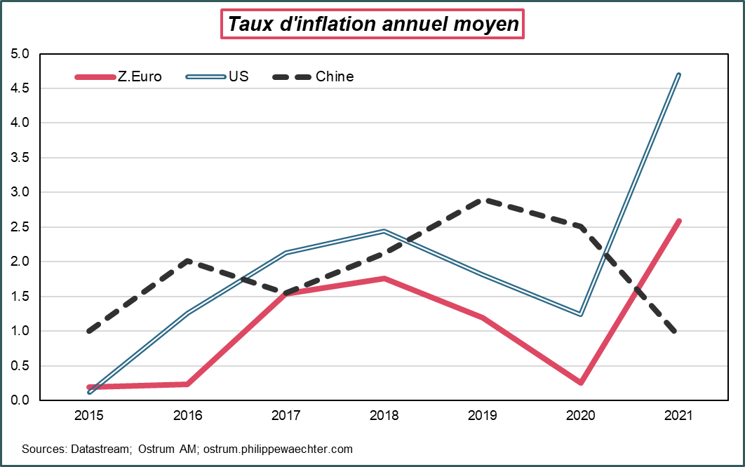 La PBoC avec sa politique monétaire plus accommodante veut relancer la dynamique interne de la Chine avec un risque de dépréciation du renminbi et une pression haussière sur le prix des matières premières. La Fed en durcissant le ton va peser sur le cycle économique mondial, favoriser la hausse du billet vert et l’inflexion du prix des matières premières. C’est cette opposition nouvelle qui va animer l’année 2022. La dimension politique de cet affrontement ne manquera pas de nous passionner.