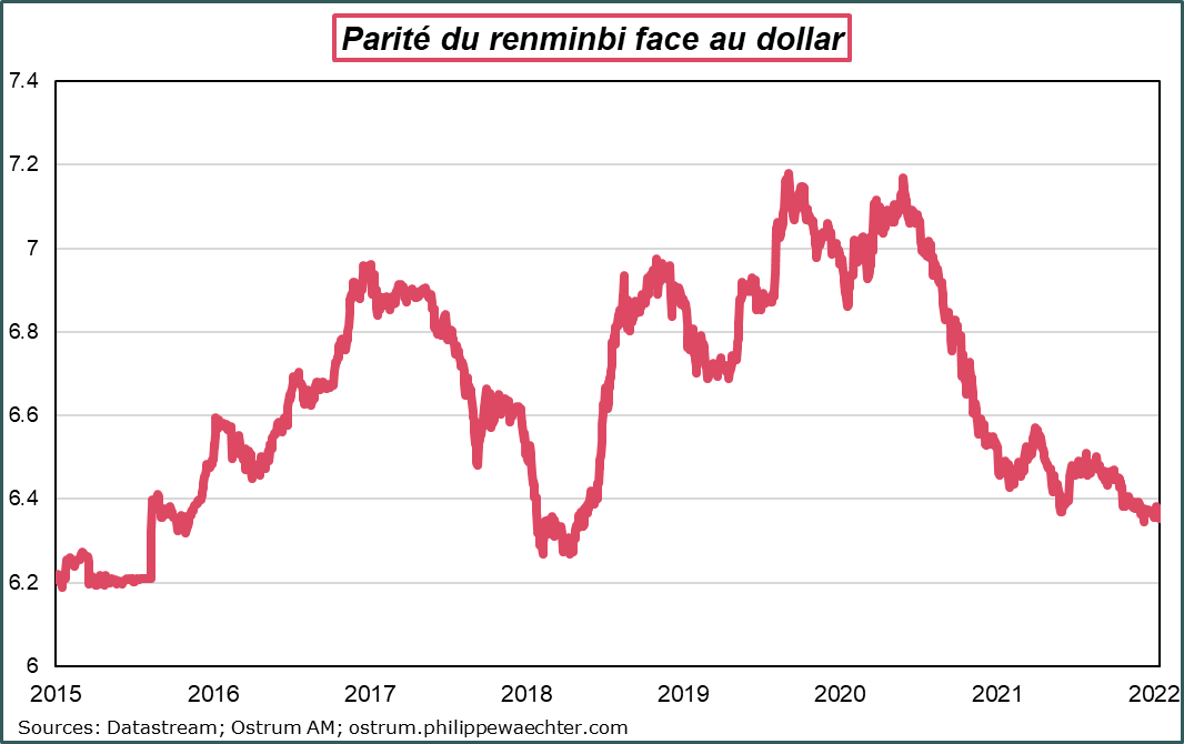 Elle avait abaissé le taux de réserve obligatoire en décembre et a réduit ce matin le taux des prêts à 1 an. Cette politique monétaire a pour objectif de soutenir l’activité interne afin de maintenir un taux de croissance robuste. Il faut donc inverser rapidement la dynamique et c’est pour cela que l’on doit s’attendre à une politique monétaire très accommodante en 2022 dans l’Empire du milieu.