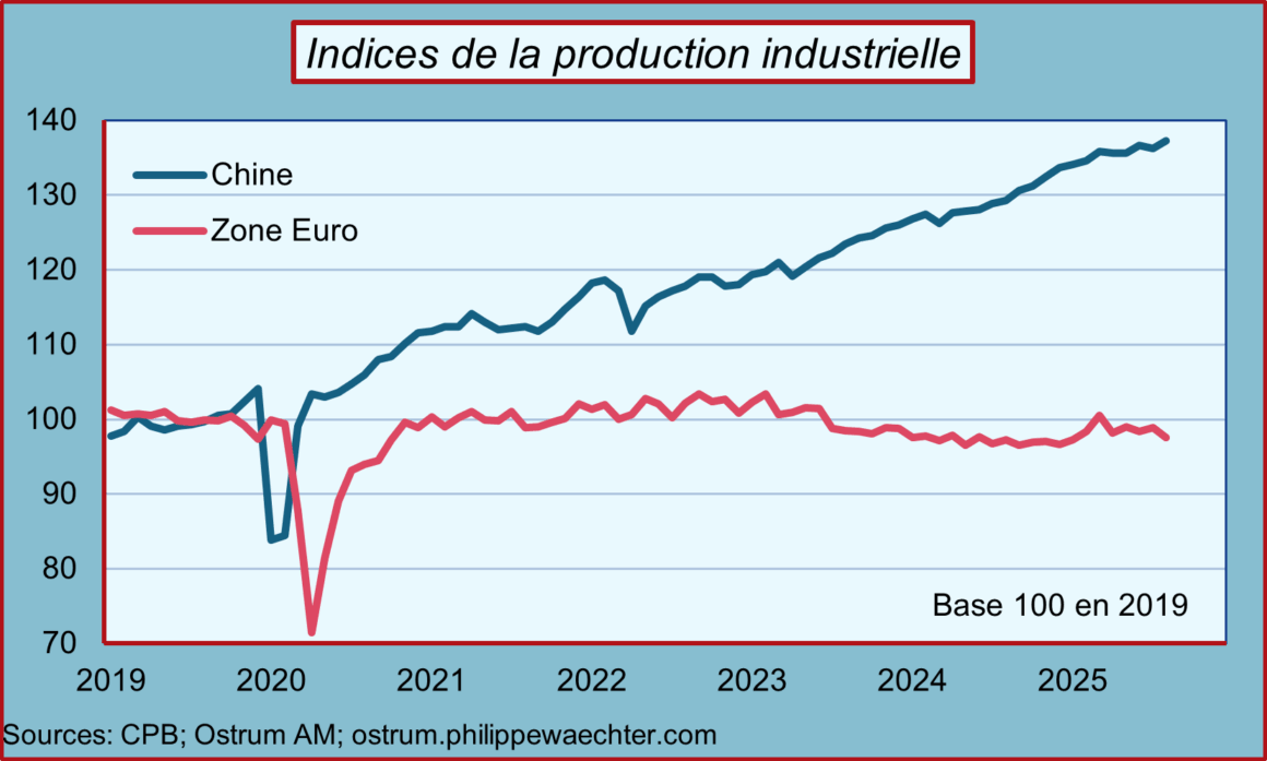 En prenant l’année 2019, avant la pandémie, comme référence, l’indice chinois est à 137 au mois d’août contre 97.5 en zone Euro.