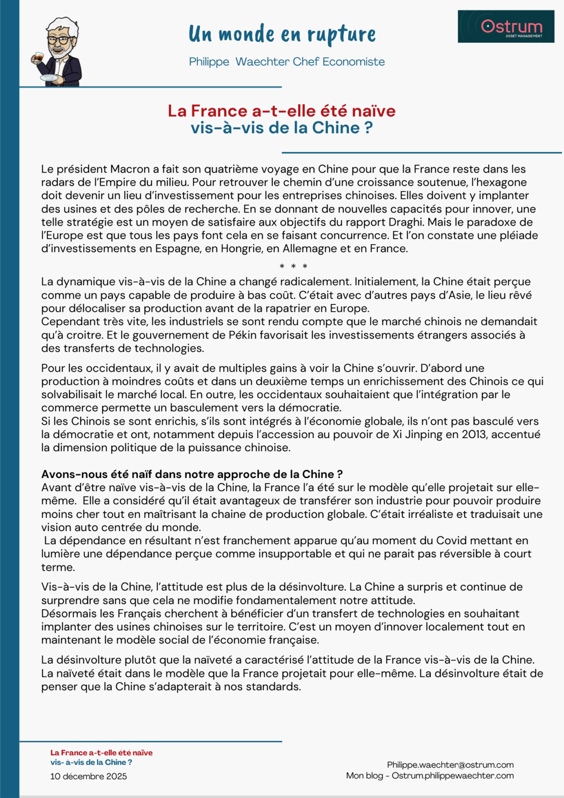 Avant d’être naïve vis-à-vis de la Chine, la France l’a été sur le modèle qu’elle projetait sur elle-même. Elle a considéré qu’il était avantageux de transférer son industrie pour pouvoir produire moins cher tout en maîtrisant la chaine de production globale. C’était irréaliste et traduisait une vision auto centrée du monde.