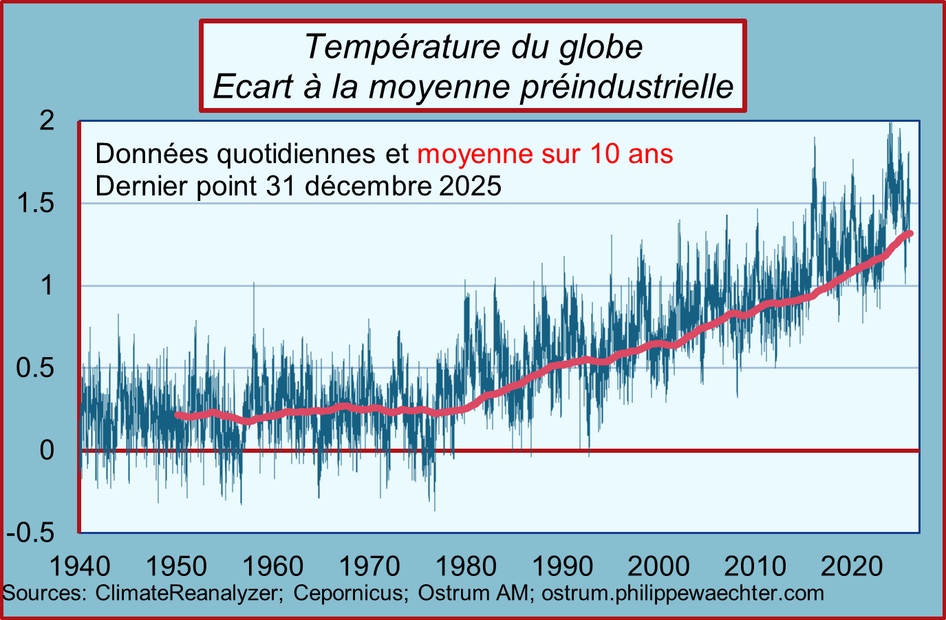 - Si 2026 est attendue avec une température comparable à 2025, la tendance reste haussière en raison des deux points cités juste au-dessus.