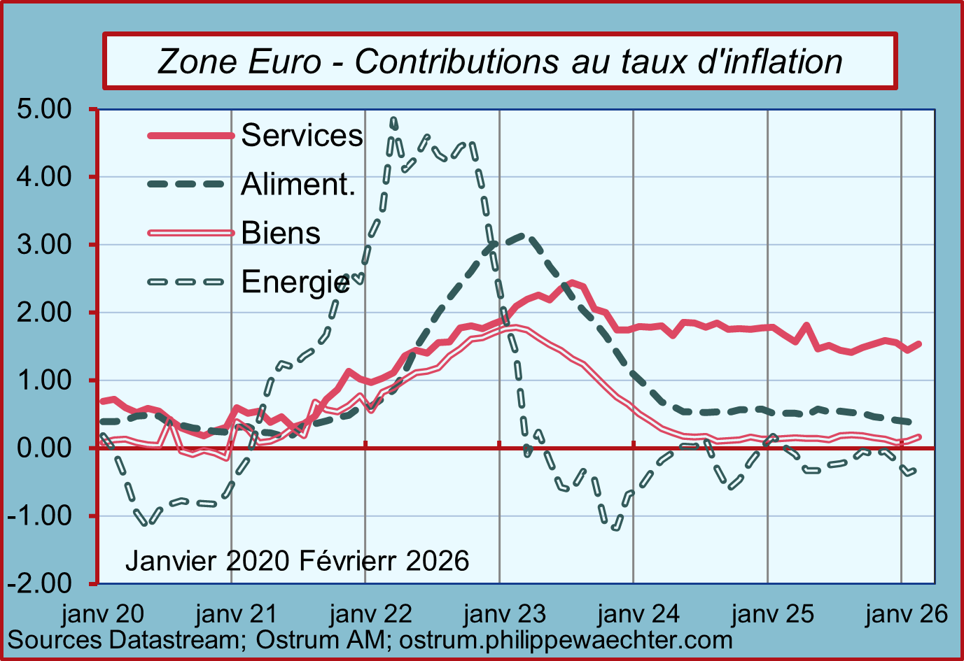 Il est trop tôt pour réviser les prévisions d’inflation parce que les composantes de l’inflation, autres que l’énergie, ne sont pas affectées. Il faut surveiller tous les signaux faibles qui pourraient indiquer qu’une configuration inflationniste se met en place. C’est encore prématuré.
