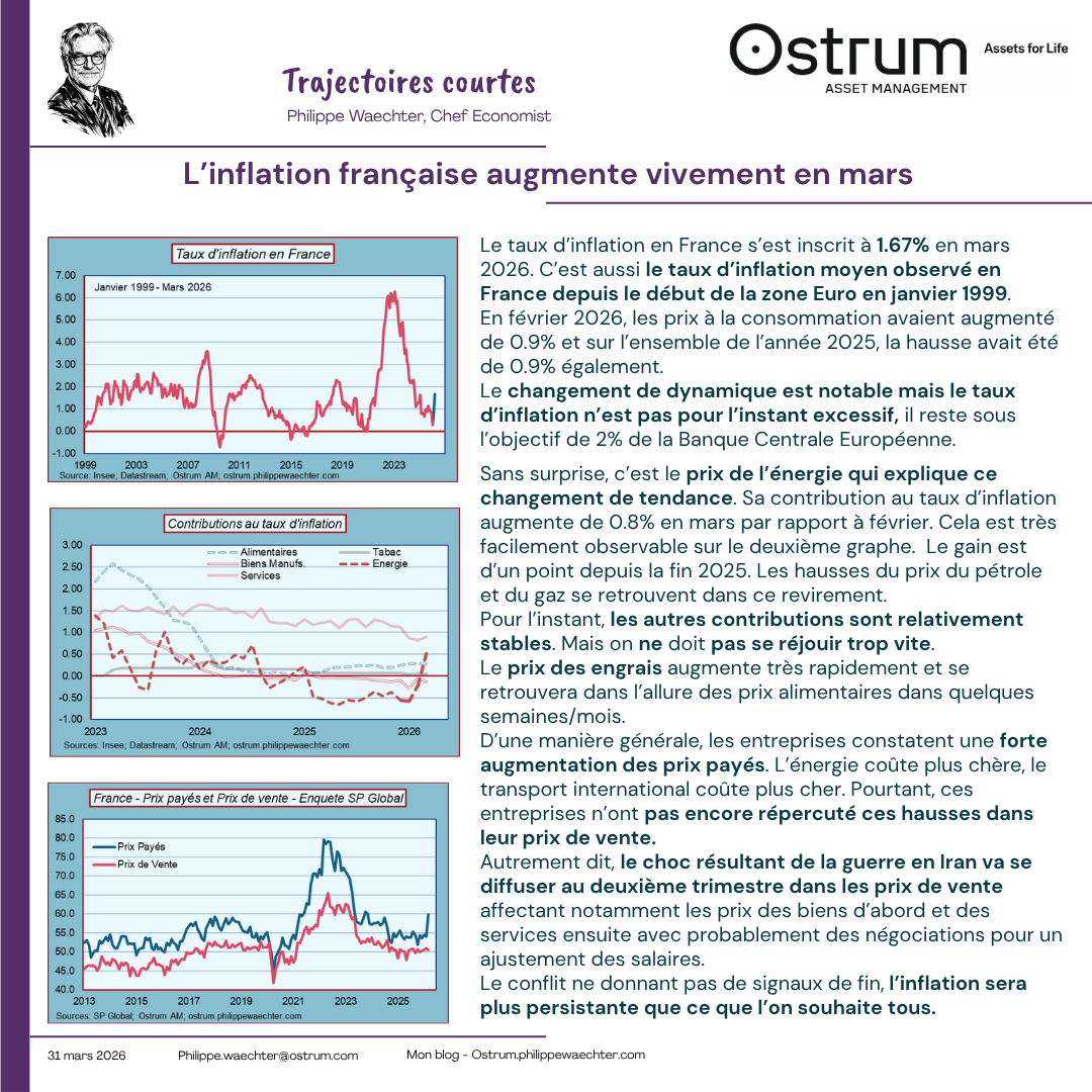 Autrement dit, le choc résultant de la guerre en Iran va se diffuser au deuxième trimestre dans les prix de vente affectant notamment les prix des biens d’abord et des services ensuite avec probablement des négociations pour un ajustement des salaires.