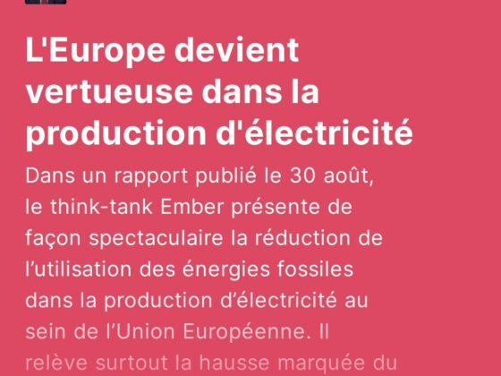 Dans un rapport publié le 30 août, le think-tank Ember présente de façon spectaculaire la réduction de l’utilisation des énergies fossiles dans la production d’électricité au sein de l’Union Européenne. Il relève surtout la hausse…
