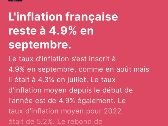 Le taux d’inflation s’est inscrit à 4.9% en septembre, comme en août mais il était à 4.3% en juillet.Le taux d’inflation moyen depuis le début de l’année est de 4.9%…