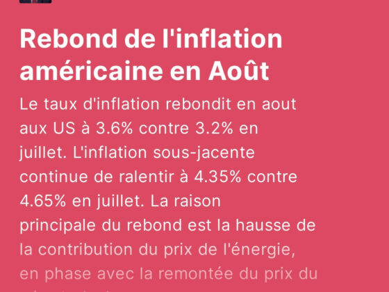 Le taux d’inflation rebondit en aout aux US à 3.6% contre 3.2% en juillet. L’inflation sous-jacente continue de ralentir à 4.35% contre 4.65% en juillet. La raison principale du rebond…